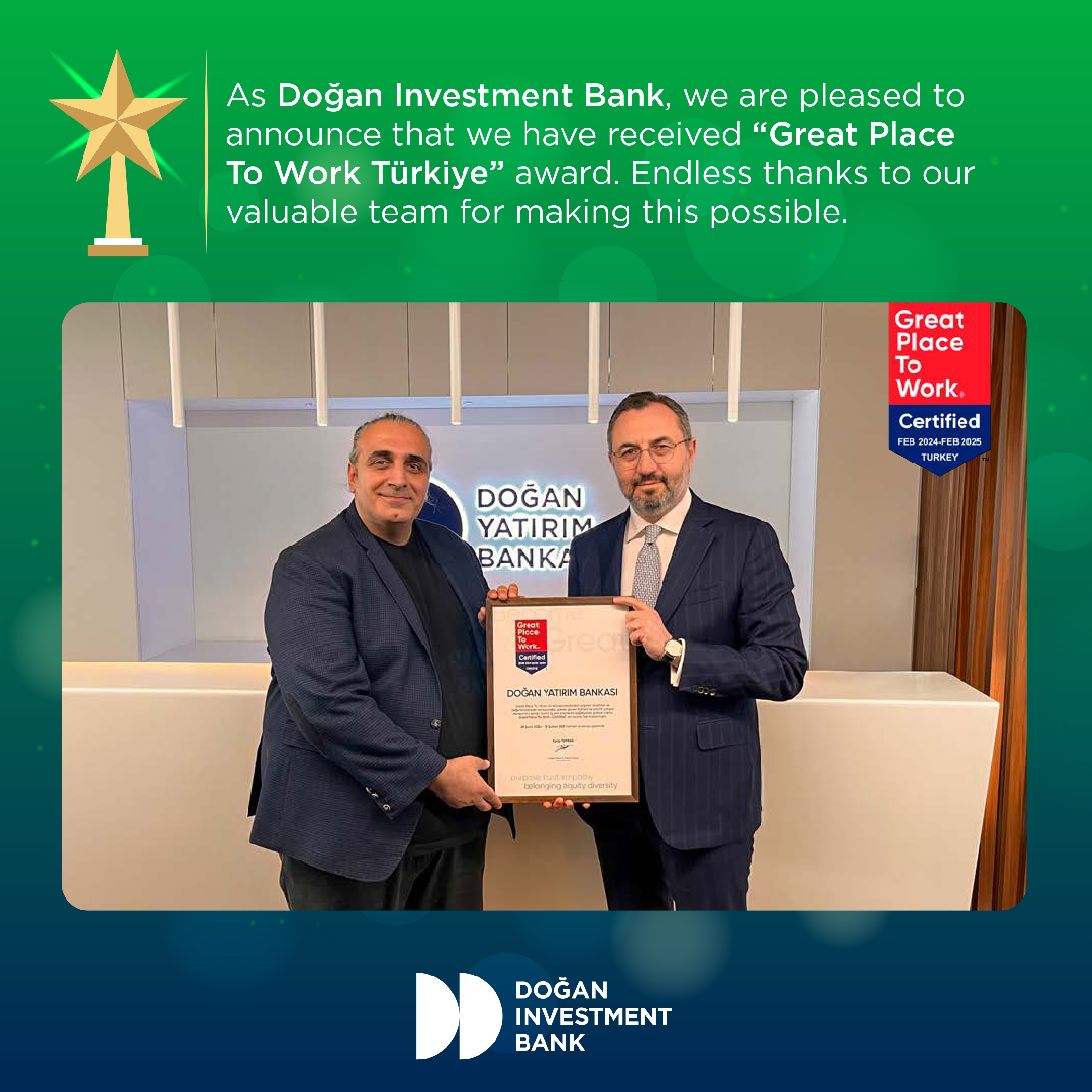 Doğan Investment Bank has been entitled to receive “Great Place To Work Türkiye” award.