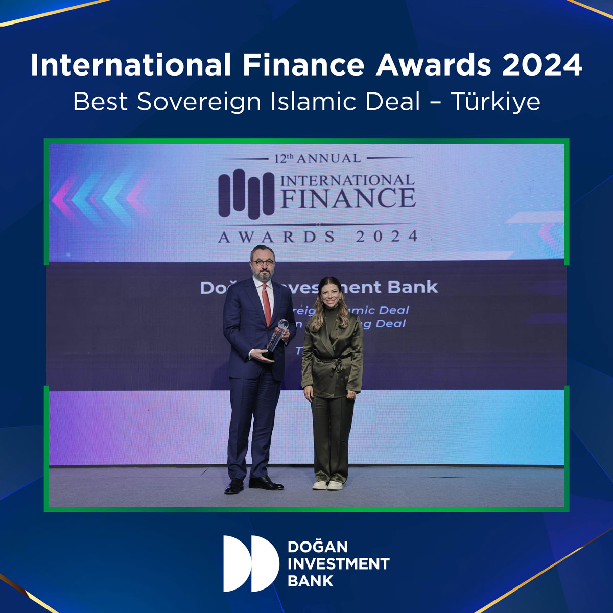 We are delighted to announce that we have been honored with "Best Sovereign Islamic Deal - Türkiye 2024" award at the 12th Annual International Finance Awards held on January 16th in Dubai, for facilitating Türkiye Wealth Fund’s inaugural international Islamic financing transaction in the value of USD 100 million, which also marks the first bilateral Murabaha financing provided by Sharjah Islamic Bank to a sovereign wealth fund in the world.